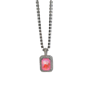 Collar Plateado Rodio Dije Piedra Rosa